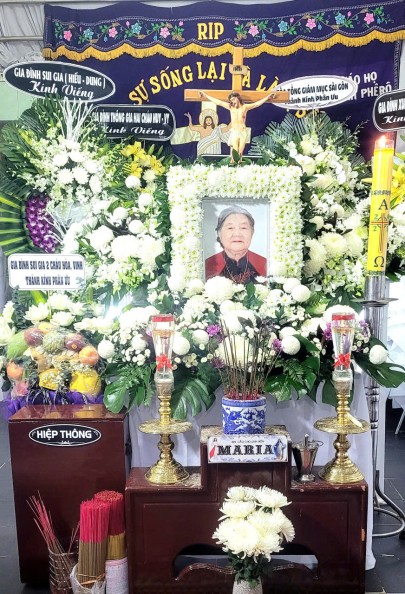 Linh cữu quàn tại số 15 đường Hoàng Xuân Nhị, Phường Tân Phú, TP HCM thuộc Giáo xứ Phú Hòa.
