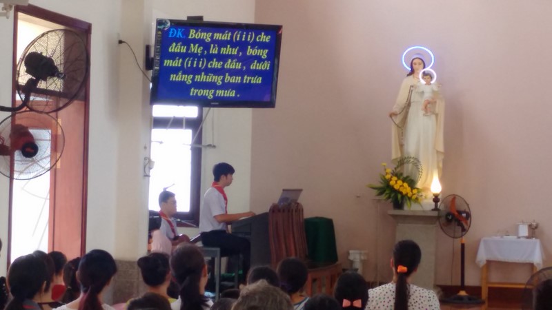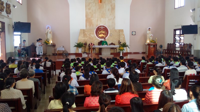 Vào lúc 7:30 sáng Chúa nhật tại Thánh đường Phú Hòa, Cha Phêrô Hồ Hà Tiến Nam thuộc Dòng Ngôi Lời, dâng thánh lễ cầu nguyện cho các em Thiếu nhi Thánh Thể và nói lời chia tay với các em để về Dòng tiếp tục sứ vụ mới.