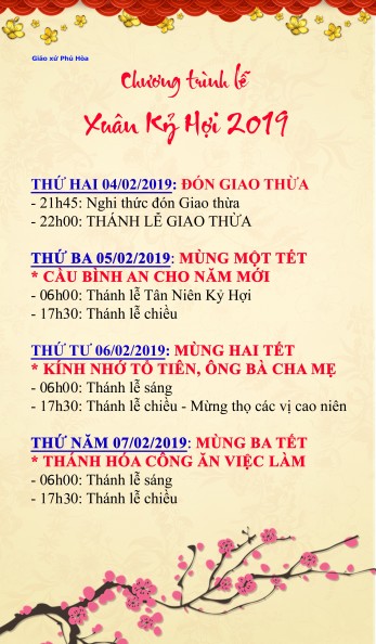– 06h00: Thánh lễ tân niên Kỷ Hợi