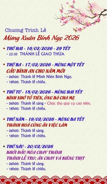 06g00: Thánh lễ Tân niên Bính Ngọ
