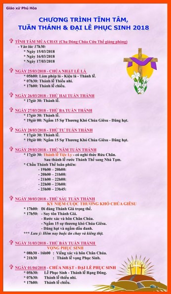 – 05h30: Lễ Phục Sinh – Thánh lễ Rạng Đông