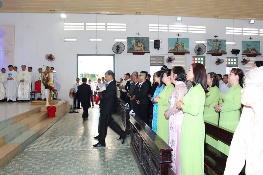 Để kết, Đức Cha mời cộng đoàn nhớ ơn các bậc tiền nhân đã chuẩn bị xây ngôi nhà thờ này. Dù xây ngôi nhà thờ vật chất nhưng không quên xây dựng đền thờ thiêng liêng. Nhà thờ thiêng liêng được xây trên Lời Chúa. Xin Chúa chúc lành cho cộng đoàn, cho ân nhân.