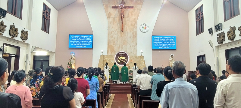 Trước khi ban phép lành cuối lễ, Cha sở Vinh Sơn bày tỏ lòng tri ân cộng đoàn đã quảng đại đóng góp cho quỹ hỗ trợ đồng bào bão lụt và quỹ truyền giáo, đồng thời mời gọi mọi người tiếp tục cộng tác để Hội Thánh có thêm phương tiện mở rộng cánh đồng truyền giáo.