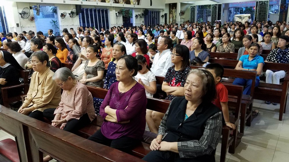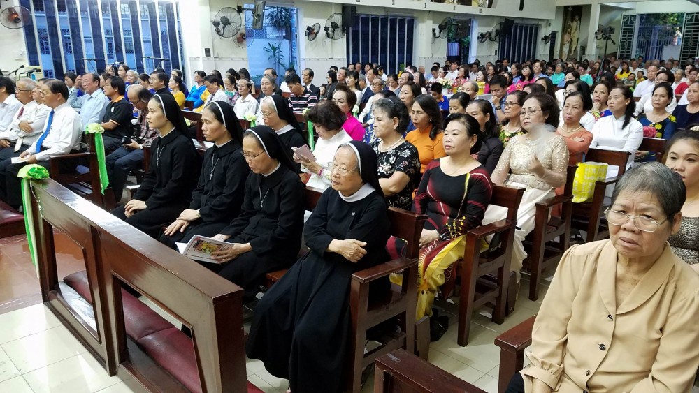 Chiều hôm nay, 28 tháng 4 năm 2018, những con đường vào giáo xứ Sao Mai (Tổng Giáo Phận Sài Gòn) vốn nhỏ hẹp lại phải hẹp hơn vì lượng người đổ về với giáo xứ hôm nay đông hơn để tham dự Thánh Lễ chiều. Đơn giản rằng hôm nay, hòa cùng niềm vui với Cha Chánh xứ Đaminh Đinh Văn Vãng, thân nhân, bà con giáo dân giáo xứ Sao Mai và Hiệp Hội Thánh mẫu …