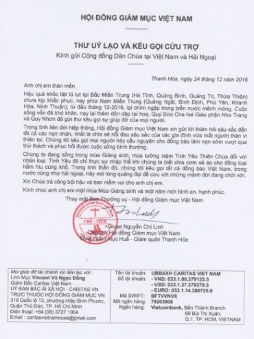 Chúng ta đang sống trong mùa Giáng sinh, mùa tưởng niệm tình yêu Thiên Chúa đối với nhân loại. Tình yêu đó chỉ thực sự nhập thể khi chúng ta biết chia cơm sẻ áo cho đồng loại hẩm hiu cùng khổ. Trong tinh thần đó, chúng tôi kêu gọi tất cả đồng bào Việt Nam, trong nước cũng như hải ngoại, hãy mở lòng quảng đại để cứu vớt những mảnh đời đang chới với.