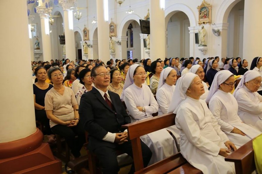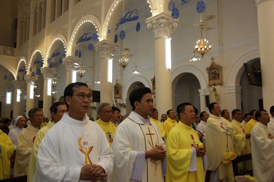 Thánh Lễ tạ ơn chiều nay kỷ niệm 50 năm linh mục của Cha nguyên chánh xứ Tân Định Gioan Baotixita Võ Văn Ánh do Đức Cha Luy Nguyễn Anh Tuấn chủ tế. Cùng đồng tế với Đức Cha Luy có Cha Sở và Cha Phó Tân Định, quý Cha Quản Hạt, Quý Cha Bề Trên và nhiều Cha thân quen với Cha G. B. Và dĩ nhiên, nhân vật chính hôm nay cùng hiện diện trong Thánh Lễ tạ ơn này là của Cha nguyên chánh xứ Tân Định Gioan Baotixita Võ Văn Ánh.