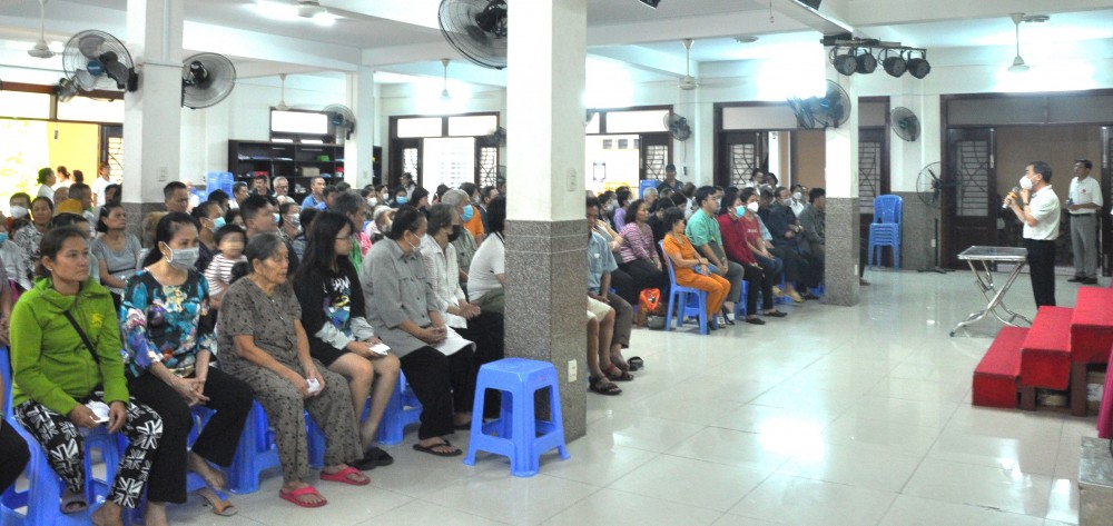 Lời chia sẻ của Cha Vinh Sơn, linh hướng Ban Caritas hạt Phú Thọ trong buổi họp mặt tại hội trường giáo xứ Phú Hòa, nhân dịp mừng ngày Thế giới người nghèo mà Đức Giáo Hoàng  Phanxico gửi sứ điệp đến cho mọi người: “Đừng ngoảnh mặt làm ngơ với bất cứ người nghèo khổ nào” (Tb 4,7)