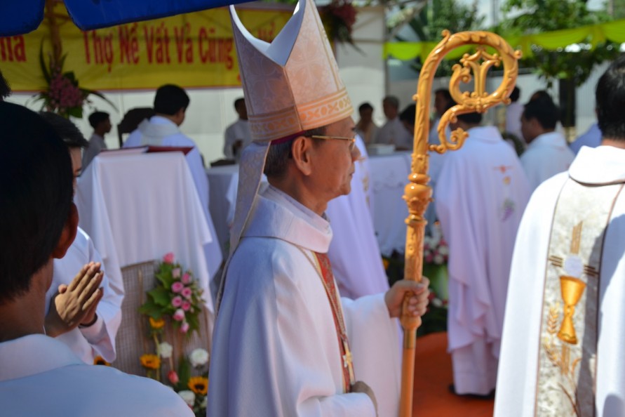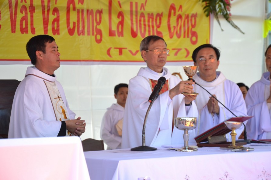 Ngày hôm nay có cũng ân nhân hiện diện ở đây. Theo lời Đức Cha, con cũng xin và ân nhân dâng cho nền móng. Nền móng chưa lên khỏi mặt đất là 400 triệu. Con sợ không lú lên được nhưng tin Chúa … Một lần nữa, con xin hết lòng cảm ơn Đức Cha, Cha Quản Hạt, quý Cha, quý tu sĩ nam nữ và cộng đoàn, quý ân nhân.