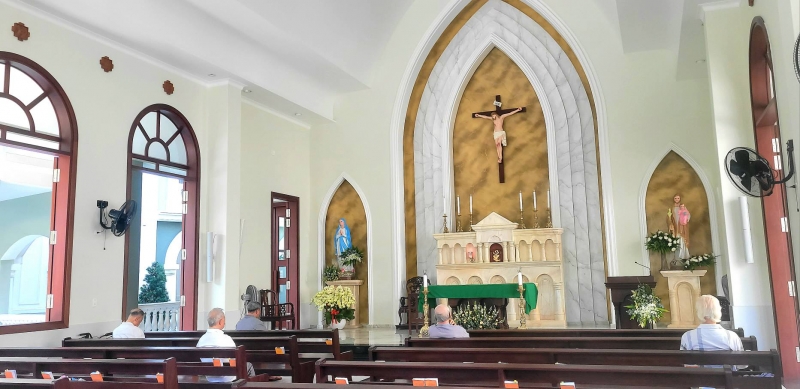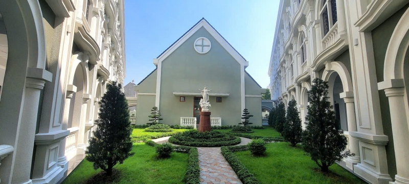 Ngay từ cổng vào, Nhà Tỉnh Dưỡng đã mở ra trước mắt chúng tôi một không gian kiến trúc hiện đại, thoáng đãng và trang nghiêm. Nổi bật giữa khuôn viên là nhà nguyện – thánh đường mới được xây dựng, được xem như trái tim của toàn bộ trung tâm. Tại nơi thánh thiêng này, mỗi ngày quý cha vẫn trung thành cử hành Thánh lễ, dâng lời cầu nguyện cho Giáo Hội, cho cộng đoàn dân Chúa, cho những nơi các ngài đã từng phục vụ, và cho chính những người đang nhớ đến các ngài trong lời cầu xin âm thầm.