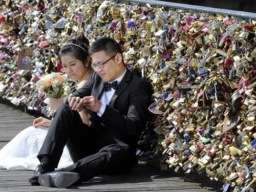 Sự thể hiện của các cặp đôi khiến cây cầu phải "oằn mình" gánh lượng khóa khổng lồ