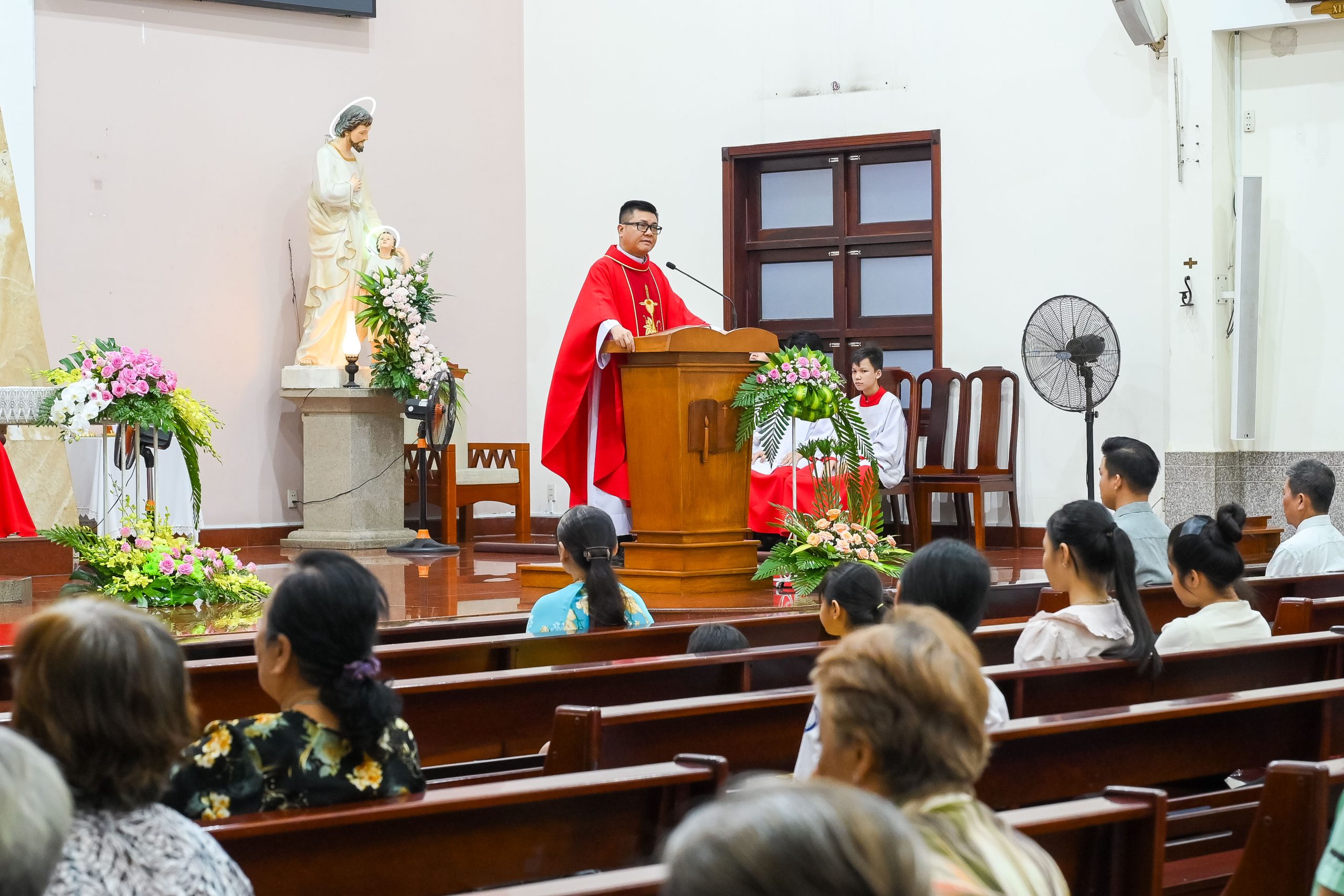 Sau lời nguyện hiệp lễ, cha sở Vinh Sơn thay mặt cộng đoàn bày tỏ lòng biết ơn đến quý cha đồng tế, các khách mời và cộng đoàn đã hiệp thông. Ngài đặc biệt nhắn nhủ Ban Truyền thông hãy noi gương Thánh bổn mạng, để mọi hoạt động truyền thông đều hướng tới sự thật, sự hiệp nhất và tình yêu thương.