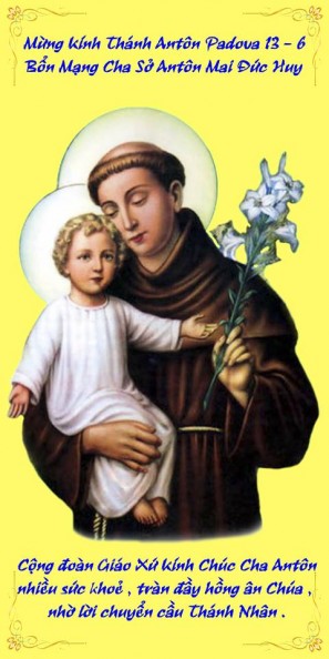 Cộng đoàn Giáo xứ mừng kính Thánh Antôn Pađôva, linh mục, tiến sĩ Hội Thánh,đồng thời bổn mạng cha sở Antôn Mai Đức Huy.