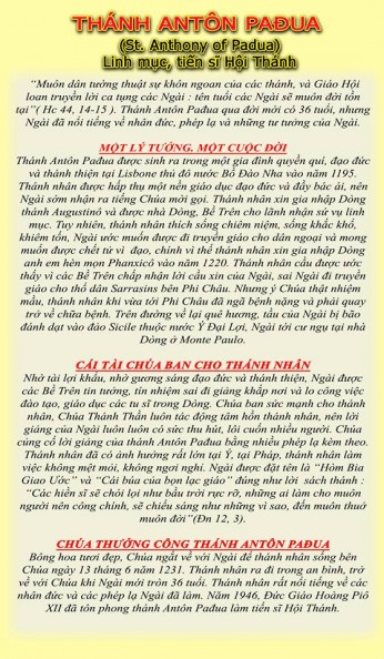Trong tâm tình tạ ơn Thiên Chúa của cha sở Antôn và phó thác cuộc đời mình vào sụ cầu bầu của Thánh Antôn bổn mạng. Vào lúc 17g30 thứ Tư ngày 13-06-2018 tại thánh đường Phú Hòa, sẽ diễn ra thánh lễ đồng tế tạ ơn.