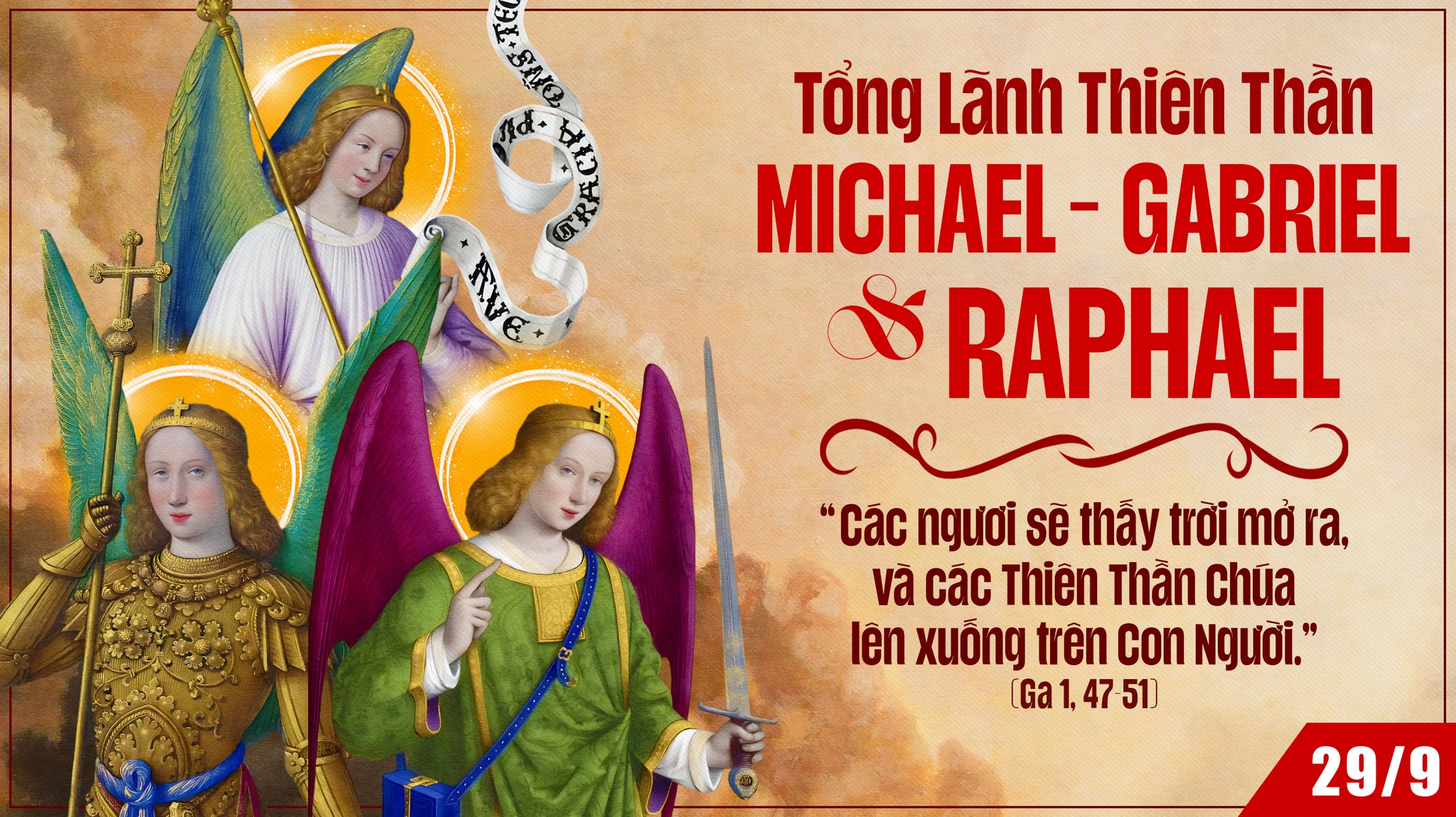 Hôm nay, Giáo Hội long trọng cử hành lễ kính ba Tổng lãnh Thiên thần: Mi-ca-en, Gáp-ri-en và Ra-pha-en. Ba vị không chỉ là những nhân vật cao trọng nơi triều thần thánh, nhưng còn là những người bạn đồng hành trong hành trình đức tin của mỗi người chúng ta. Ba Tổng lãnh Thiên thần, với ba sứ mạng khác nhau, đại diện cho ba phương diện căn bản trong tương quan giữa Thiên Chúa và con người: chiến đấu vì sự thật và công lý như Mi-ca-en, loan báo Tin Mừng và hướng dẫn đức tin như Gáp-ri-en, chữa lành và đồng hành trong khổ đau như Ra-pha-en. Dù mang những nhiệm vụ riêng biệt, các ngài đều là những “sứ giả” của Thiên Chúa, hiện diện để làm cho chương trình cứu độ được tỏ lộ, và để phục vụ lợi ích thiêng liêng của nhân loại.
